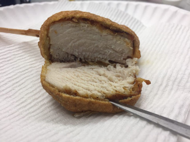 As we began the process we tried several different approaches. We attempted to bake the product after par-frying with a gluten free breading stuffed with bacon and cheese, baking a chicken breast with Cajun seasoning and basket weaved in bacon strips, and our third product attempt was to make a corn dog type product our of whole chicken breast meat. After several attempts and trial and error, we came up with the final product: the Chick-O-Pop. This product will target the market for gluten free, ready-to-cook, and the rise of alternate ingredients. After making the decision on the final product, we began perfecting the recipe and the development process to make it ready for consumer taste panels.